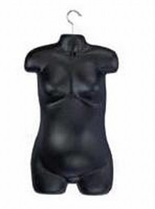 The plastic on these forms are much thicker than our vacuum formed forms. The color is black with chrome hook. Uses size medium maternity clothing. Measures 17-1/2" x 8-1/2" x 30-1/2" and uses women's size medium maternity clothing. Introducing the Injection Molded Maternity Form Black, the perfect addition to your home, store, or trade show display. This maternity form is specifically designed to cater to the needs of expecting mothers, providing them with a comfortable and realistic representation of their changing body. The form is made with high-quality injection molded plastic, ensuring its durability and longevity. The sleek black color adds a touch of sophistication to any setting, making it a standout piece in your display.